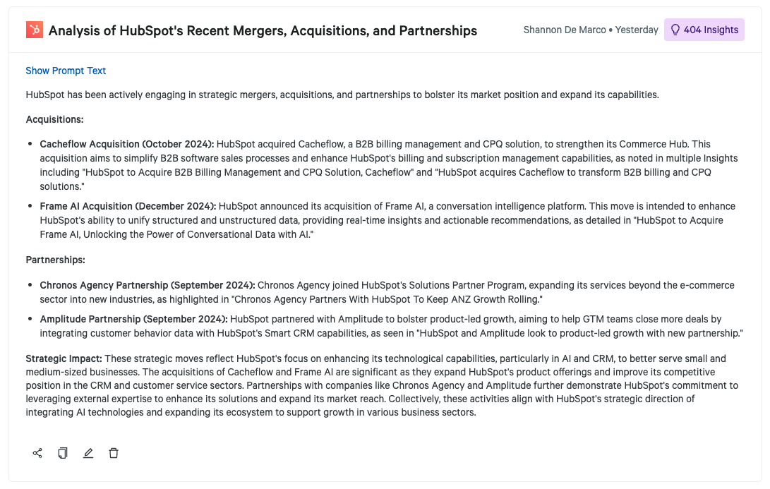 Analyze recent mergers, acquisitions, or partnerships involving this competitor. Summarize key activities and assess their impact on the competitor's market position and strategic direction.