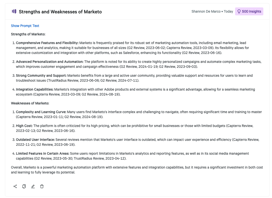 Uncover critical insights from customer reviews about competitors, highlighting recurring strengths and weaknesses. By identifying the most common themes, supported by real customer quotes, you can better understand competitor positioning and refine your strategy to address opportunities or threats. Perfect for sales, marketing, and product teams aiming to outmaneuver competitors with actionable intelligence.