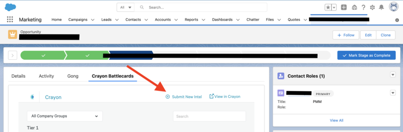 You know how you can embed reports and battlecards into any corner of your stakeholders’ tech stack? Well, whenever you do that, you’re not just giving them intel—you’re also enabling them to give you intel. With each deliverable comes a button labeled “Submit New Intel.” All your peers have to do is click that button, fill out a few fields, and boom—it’s in your portal.