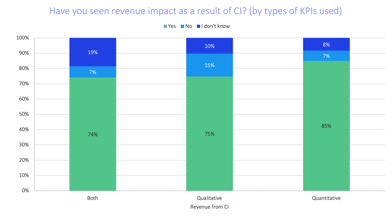 Again, we’ve got the data to back it up. Compared to companies using qualitative KPIs, companies using quantitative KPIs are 13% more likely to report direct revenue impact as a result of CI.