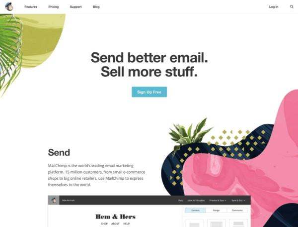 A great example of these changes was MailChimp’s brand shift. See their January 2017 website (via Inspire) where their sole focus is email optimization. Email automation software is their bread and butter.