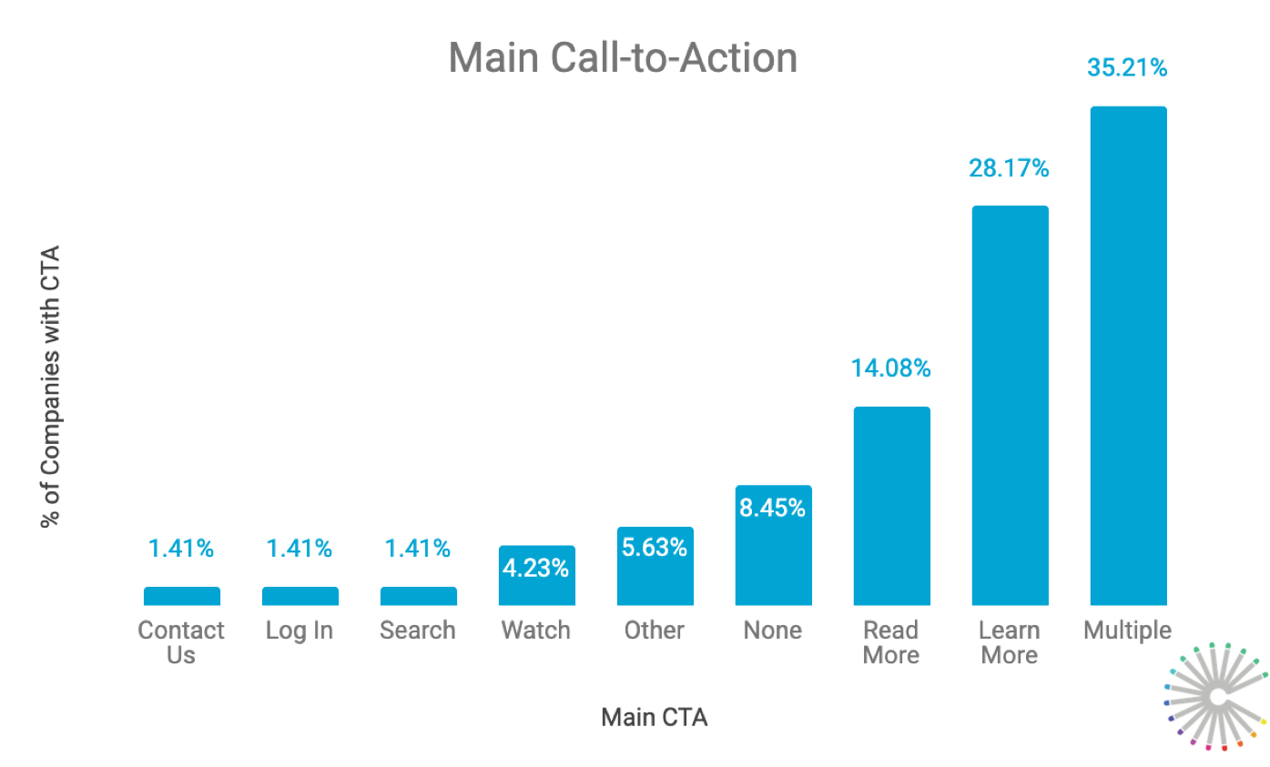 Many of these companies have more than one main call-to-action on their homepage. In addition to having multiple calls-to-action, many of them invite site visitors to learn more about their solution or product.