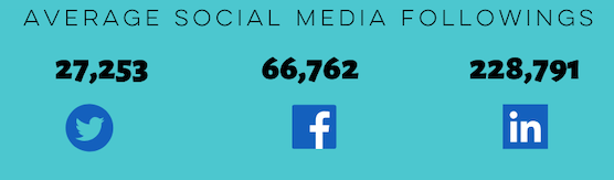 Out of these companies, the biggest social media presence was on LinkedIn. Every single company on this list had a LinkedIn profile, but for other platforms such as Facebook, Twitter, and Instagram, the presence was less common. LinkedIn also had the highest average for following out of the social media platforms analyzed.