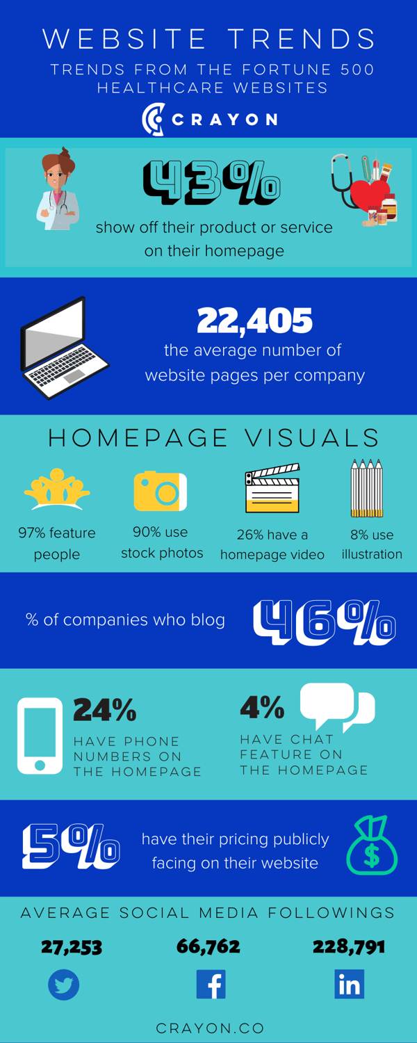 When someone goes to your website, they are likely looking for more information, but they also may want to contact your company. We found that healthcare companies don’t put their contact information front and center like many other companies would. In fact, only 24% have a phone number on their homepage, and only 4% have the option to chat with a company representative.