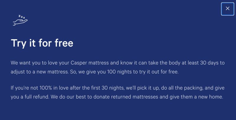 To get a sense of how this pain point is addressed in the real world, take a look at Casper’s promotion of their free trial offer: