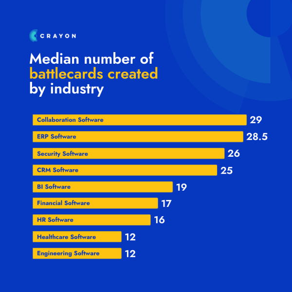 Again, several factors could explain the difference. It could be that competitive intel teams in the healthcare software space are reluctant to create battlecards—or, conversely, maybe they’re eager to keep tabs on indirect competitors. Another potential explanation is that CRM software companies more closely follow the traditional SaaS model, with a hefty emphasis on helping sales win deals.