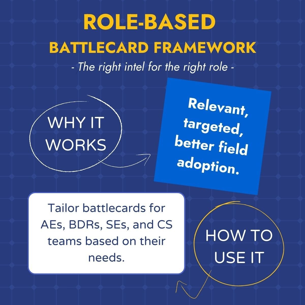 The Role-Based Framework tailors competitive content to how different roles encounter competitors. A BDR on a cold call doesn’t need the same intel an AE needs mid-deal, or an SE needs during technical evaluation.