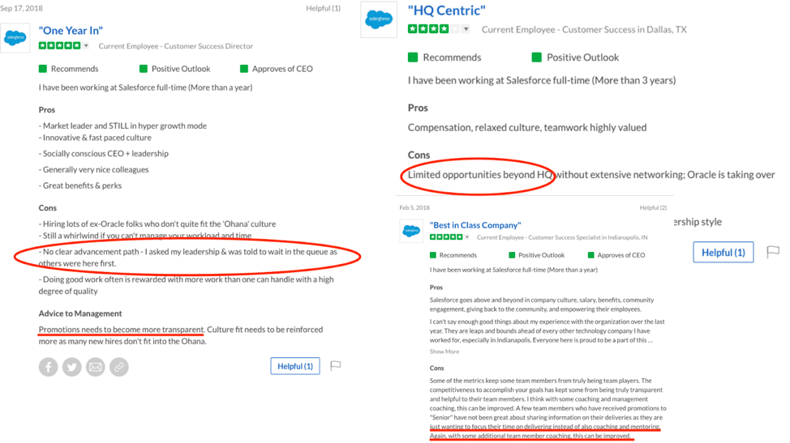 Overall, you can treat employee reviews similar to third party product reviews—pull out key, high-level themes and then compare them to your win/loss analysis to see what’s validated—and what’s new.