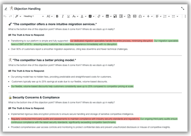 Example: Your CEO asks every Monday, "What’s the latest competitor activity?" Instead of pulling updates manually, Sparks auto-generates a weekly report with pricing changes, product launches, and key objections—delivered straight to leadership.