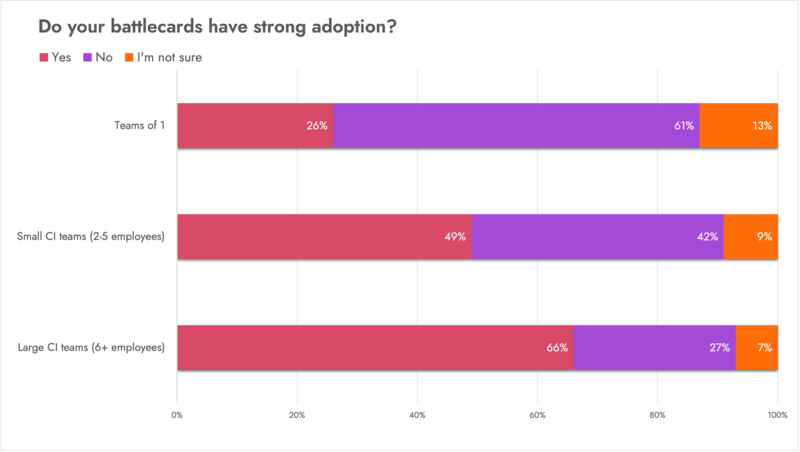Benchmark: Compared to teams of 1, large CI teams are 3X more likely to say their battlecards have strong adoption