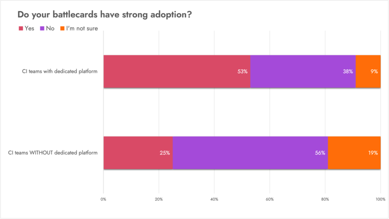 A CI team with a dedicated platform—i.e., a software tool that enables the collection, analysis, and activation of intel—is more than twice as likely to say their battlecards have strong adoption.
