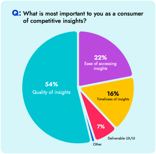 Why you should care: The success of your CI program depends on your stakeholders. If they use the insights you give them, the program is a success; if they don’t, it’s a failure. The chart you see above tells a clear story: Insights need to be relevant and easy to access. Your program will not succeed unless you meet both of those requirements.