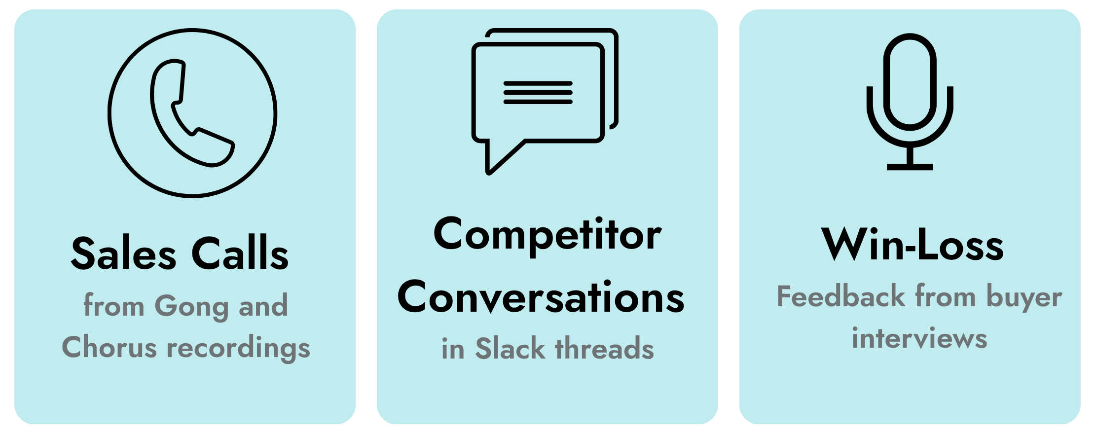 We help you generate the right insights from the right sources; sales calls, win-loss feedback, and now, with Slack Insights, the conversations happening in real time across your team. All of it is delivered directly into the tools your reps already use.
