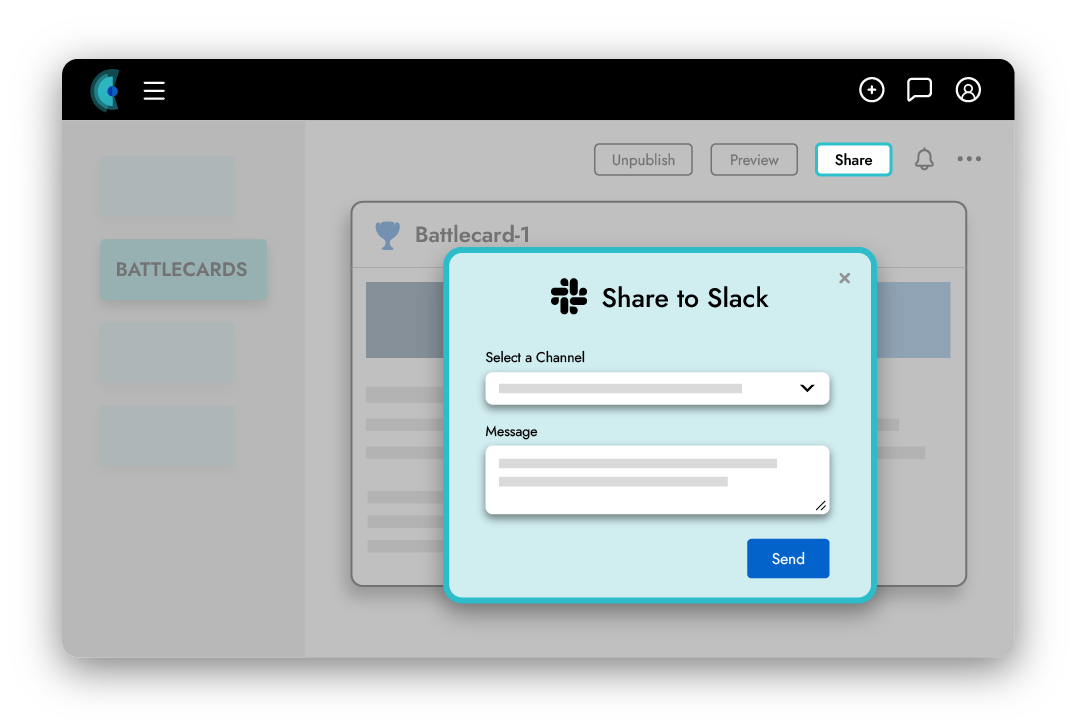 Don’t overwhelm or confuse your organization with a firehose of data. Get the most important intelligence delivered to your chosen Slack channels in real-time: whether it’s an individual insight, a curated set of talking points, or a link to an entire battlecard.