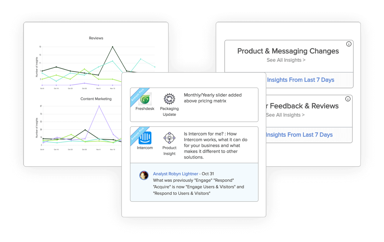 Teams on the front-line can quickly submit field intel through Crayon directly or through an integration, such as Slack. Meaningful insights are captured, analyzed, and shared across the organization. Collaboration just got a whole lot easier.